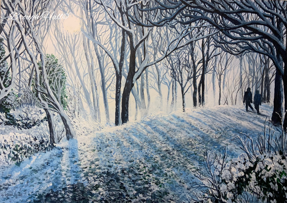 Winter Wanderings at Leg-O-Mutton is a beautiful digital artwork capturing the serene atmosphere of the countryside during winter. With snowy fields and frosty trees, it brings a cozy and peaceful feeling to any room. This high-quality digital download is perfect for art lovers who appreciate the beauty of nature and want to bring a touch of winter wonderland to their home decor.